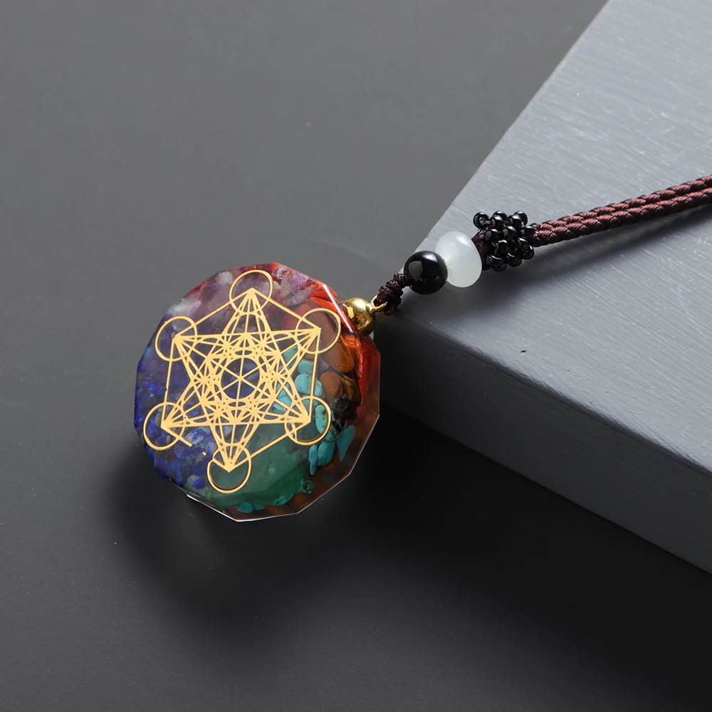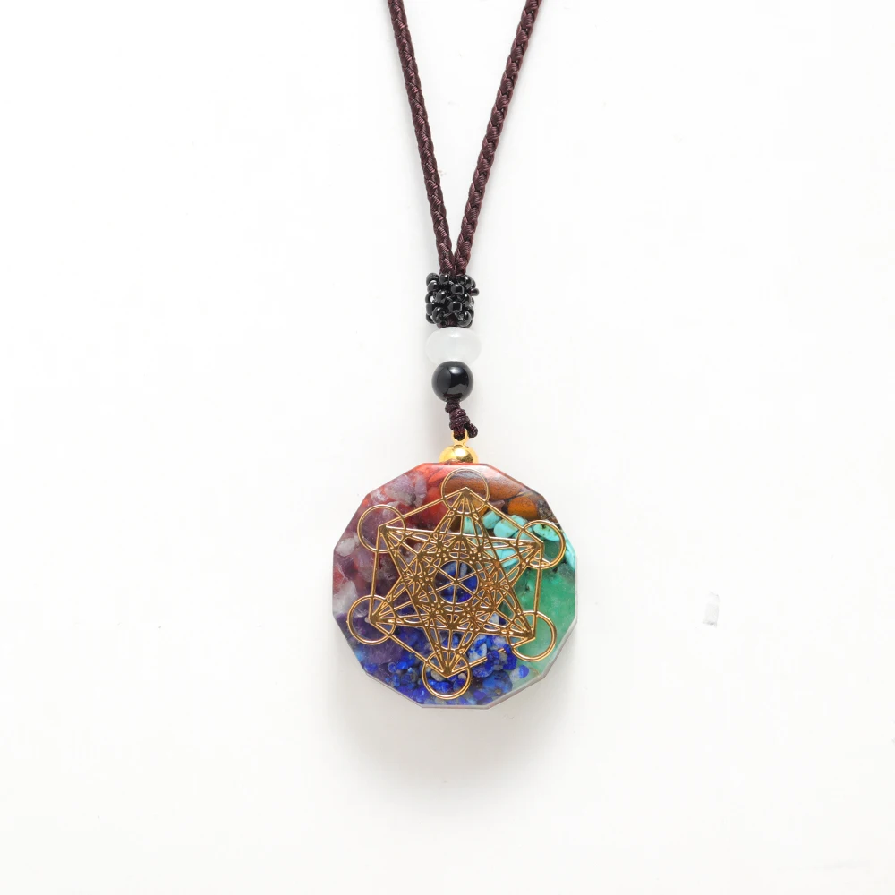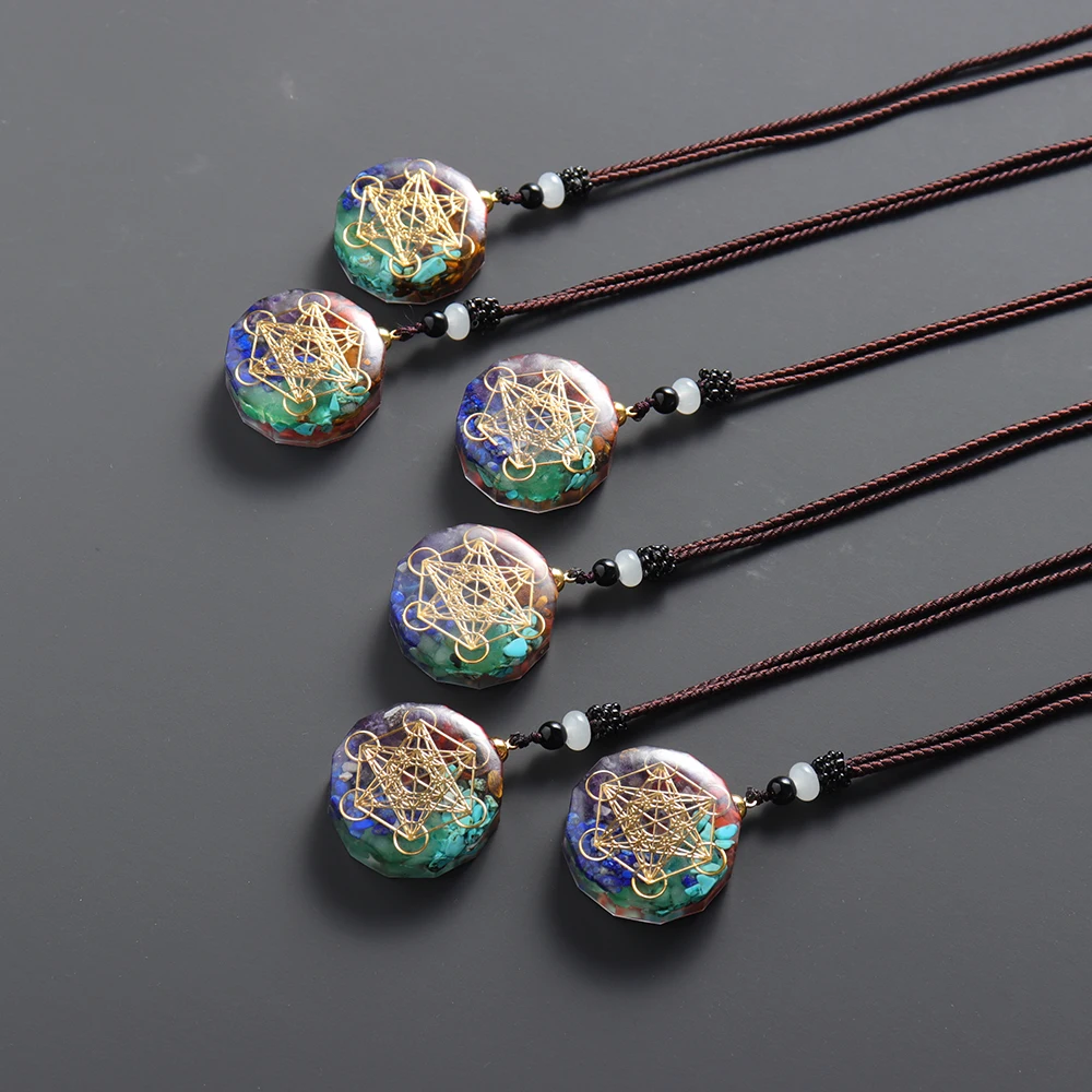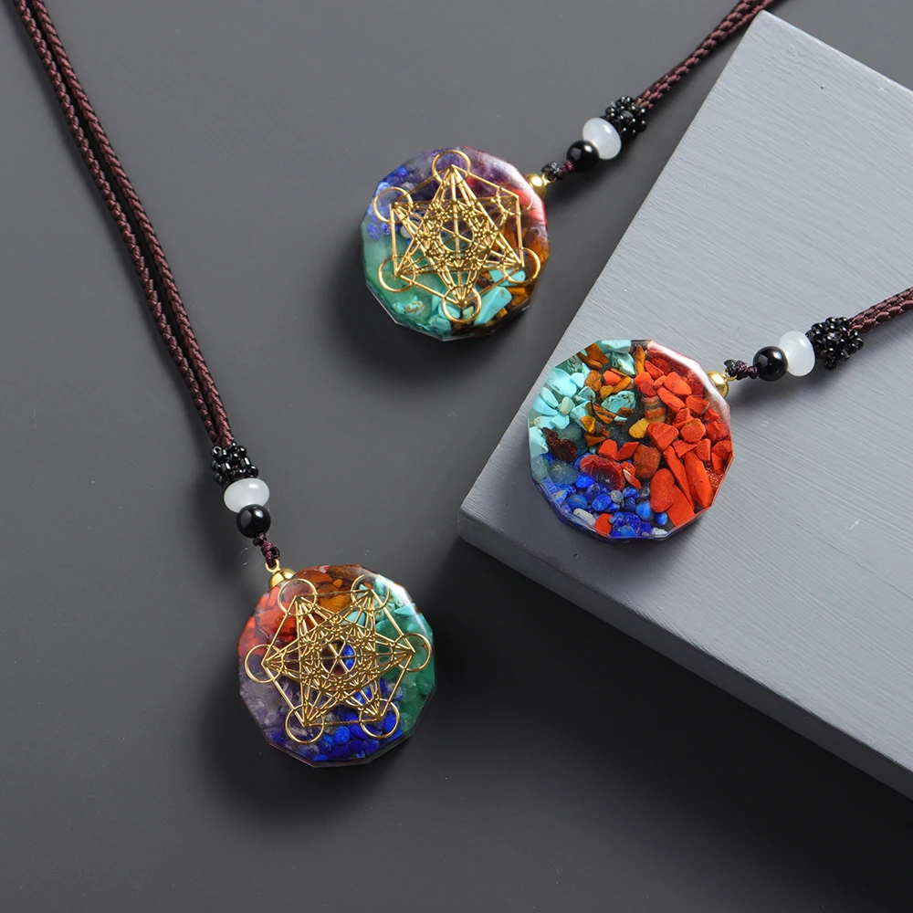 Ornamentos de pedra colorida e natural, colar artesanal com sete chakros, pingente de energia, cola em gotas, 1 peça