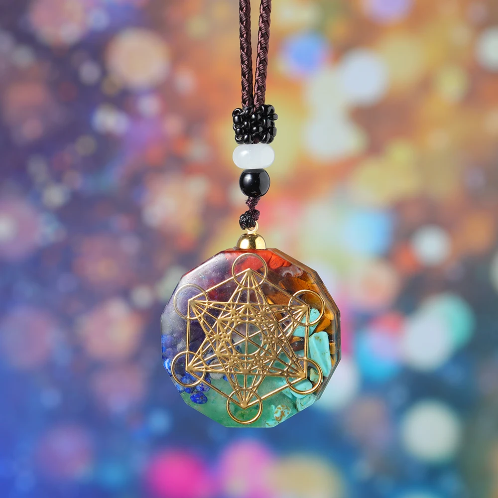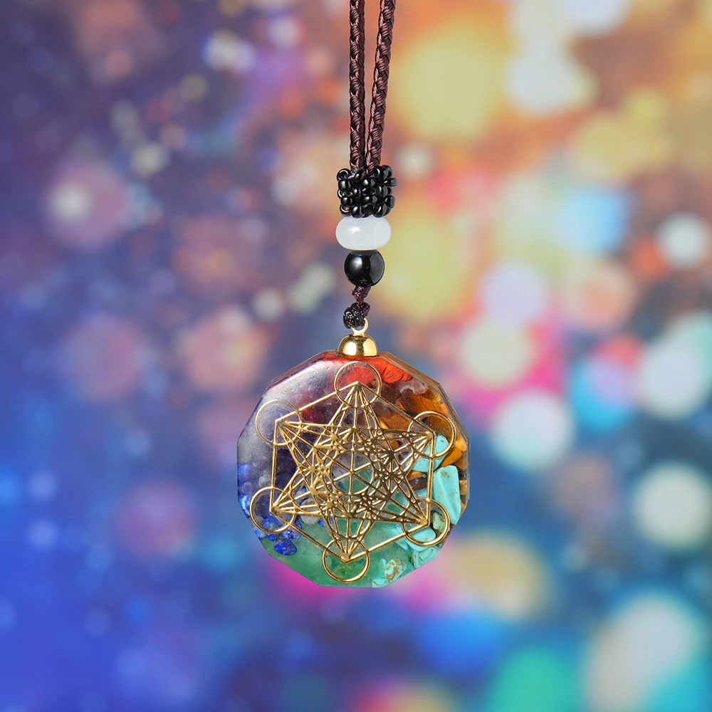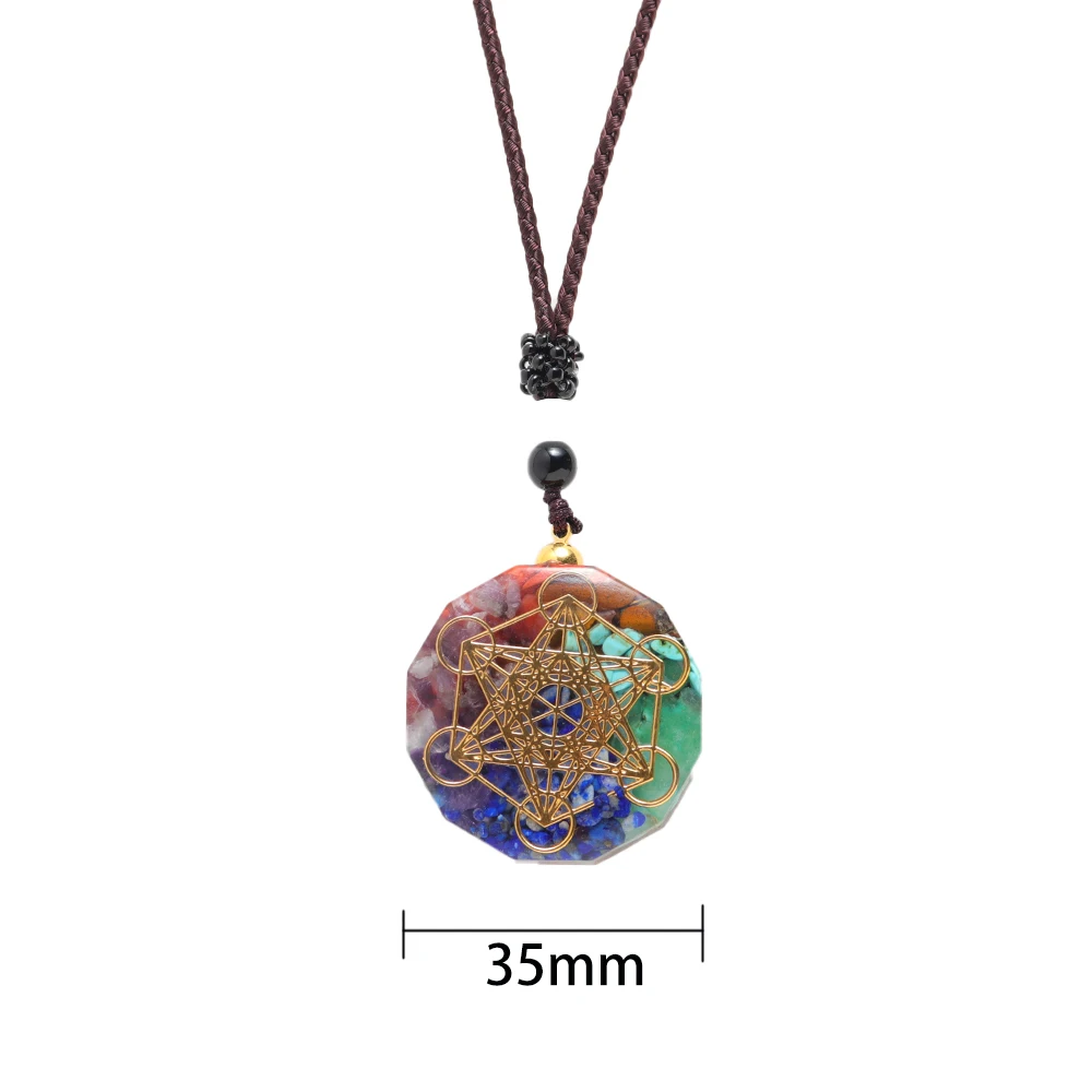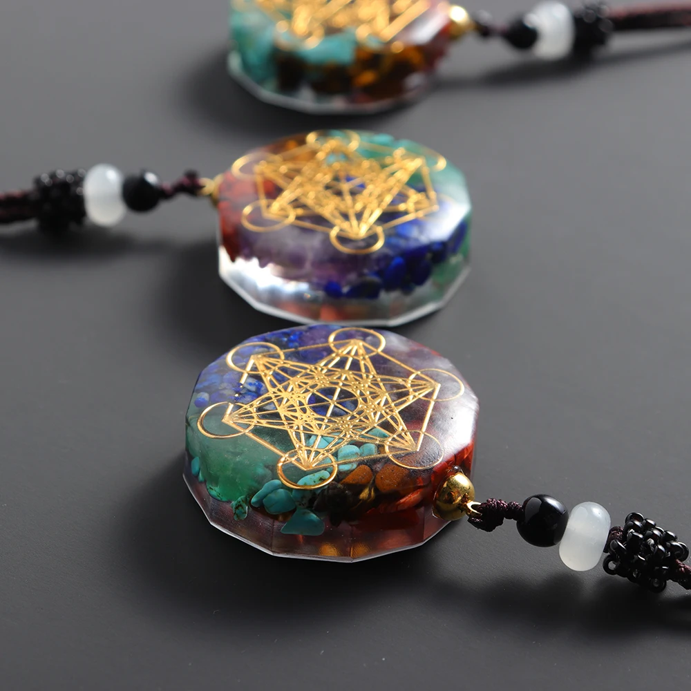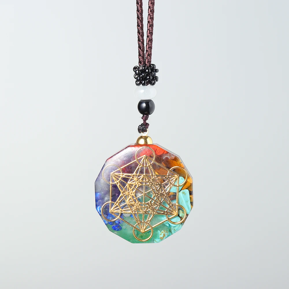 Ornamentos de pedra colorida e natural, colar artesanal com sete chakros, pingente de energia, cola em gotas, 1 peça
