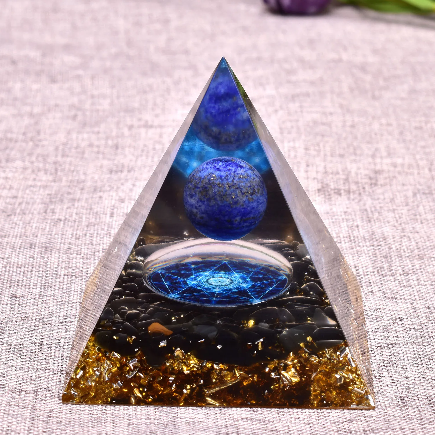 6cm orgone pirâmide obsidiana e lapis lazuli cura cristal energia