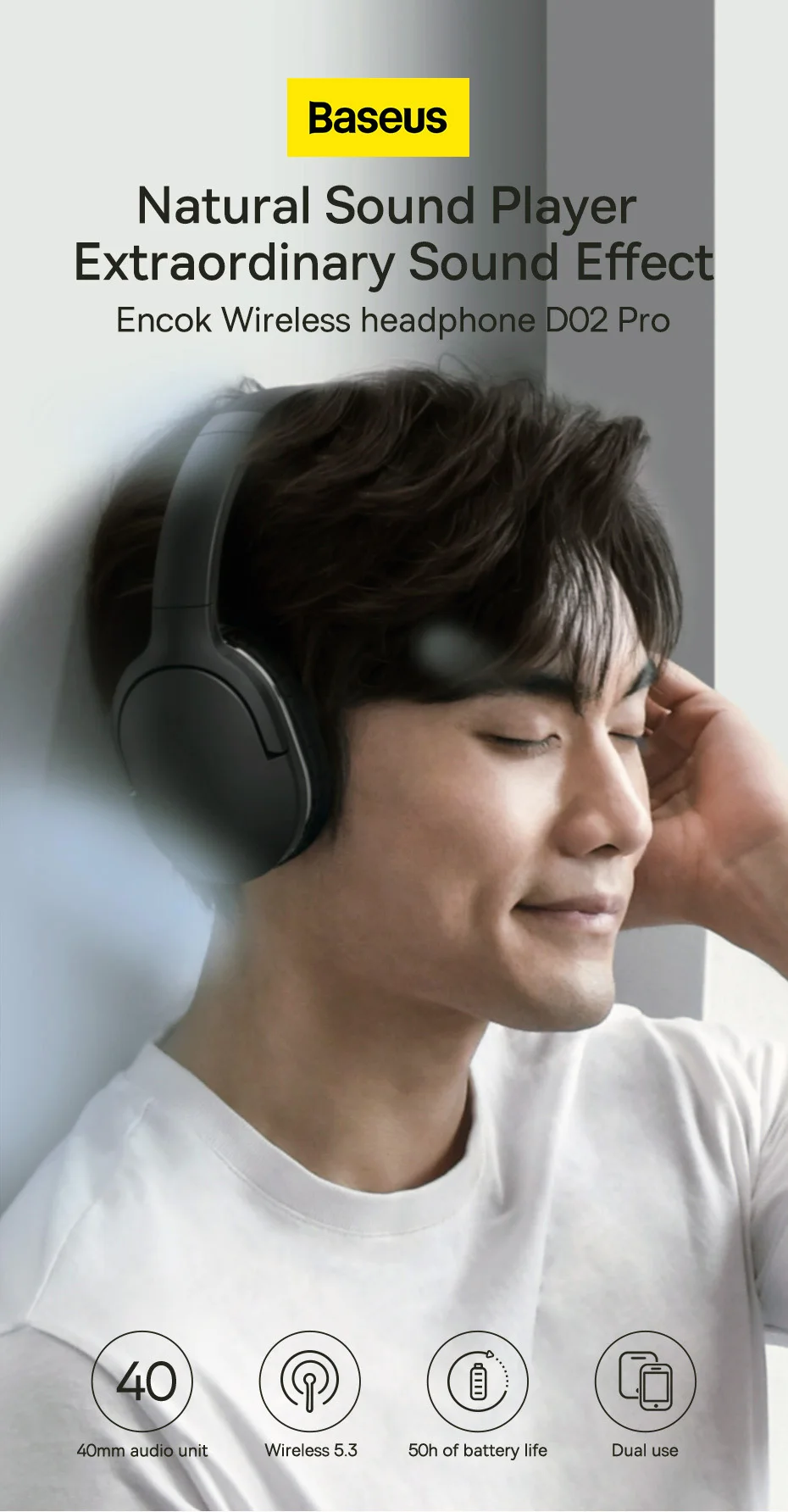 Unidade de áudio de 40mm | sem fio 5.3 | 50h de duração da bateria | dupla utilização