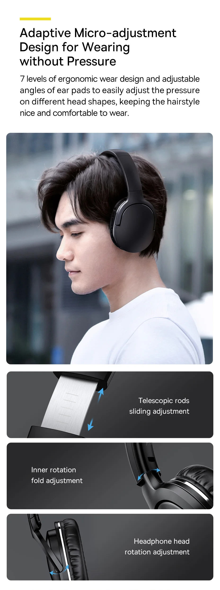 -Ajuste da rotação da cabeça do fone de ouvido