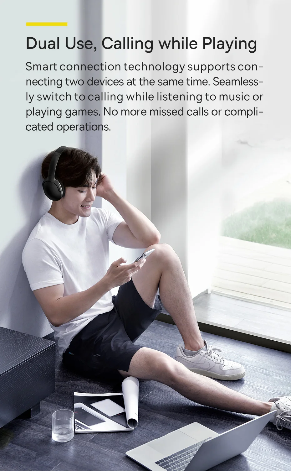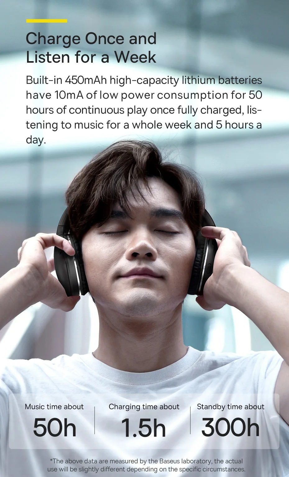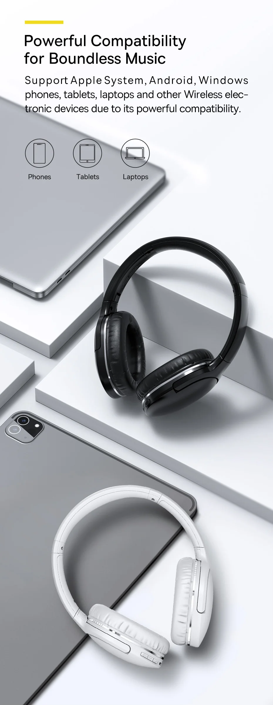 Mesmo que os fones de ouvido estejam sem bateria, a música ainda continuará. Basta conectar um cabo de áudio de 3.5mm para o jack de áudio de 3.5mm sobre eles para continuar a desfrutar de sua música